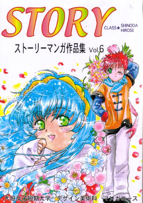 大垣女子短期大学・デザイン美術科マンガコースでは、卒業時に下の写真のような 『ストーリーマンガ作品集』(渡辺クラス*篠田クラス)の2冊を発行しています。 2001年3月発行