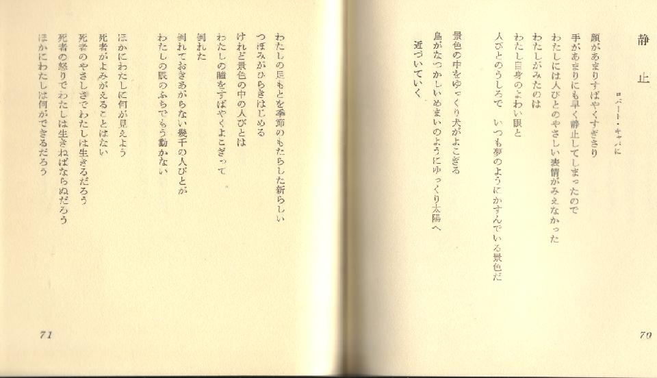 だがその視線はちぎられた山彦のように 二人の間の谷間へずり落ちていく。二人の眼は何かを叫びそうになりながら、きみと僕の眼のように近ずいていった。